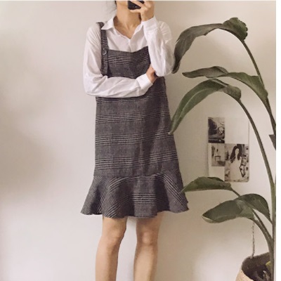 버튼으로 착용하는 멜빵 형식의 원피스구요.