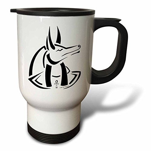 3dRose tm_155591_1 Anubis Egyptian God Tribal Art on White Background Travel Mug, 14 oz, White