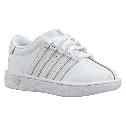 Classic, timeless style; the iconic, classic VN, features K-Swiss' signature five-stripe branding, three-piece toe, d-rings, and lace up closure. This court-inspired pair can easily be worn with any ensemble.