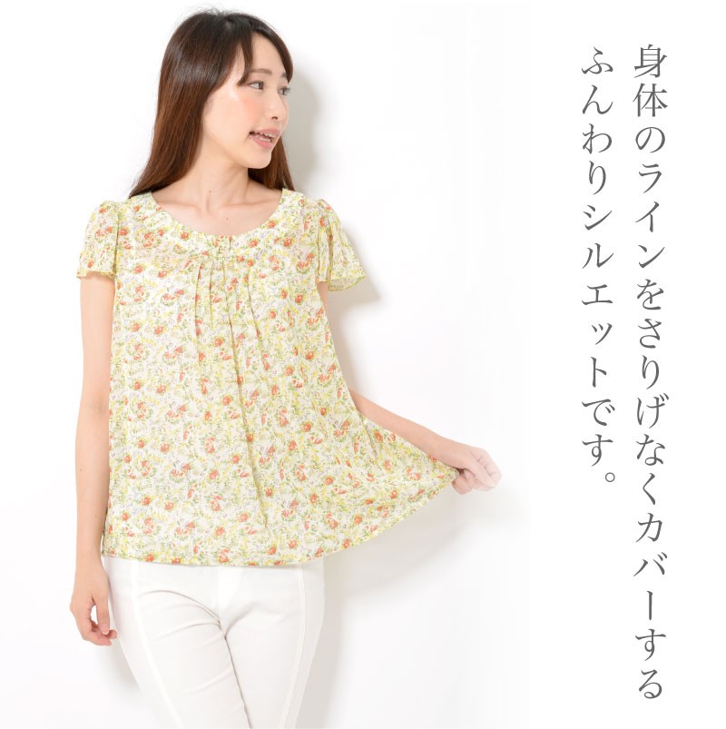 シフォン素材で、繊細な透け感が女性らしさをUPします。