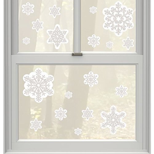 Product Description Create a snowy winter scene just inside your picture window. Arrange these Glitter Snowflake Vinyl Window Decorations however you like; rearrange them to refresh the display or change locations 0