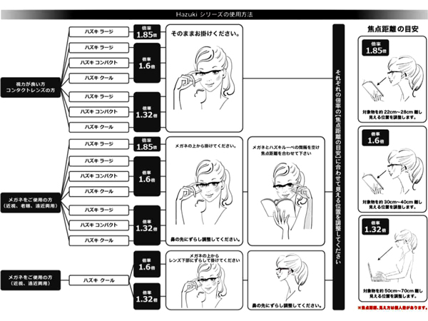 ●ハズキルーペはメガネ・コンタクトの上からも掛けられ両手を自由に、様々なシーンで使えるメガネ型拡大鏡です。