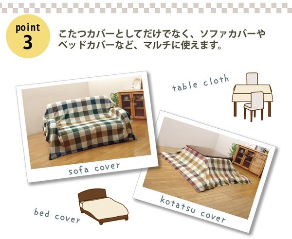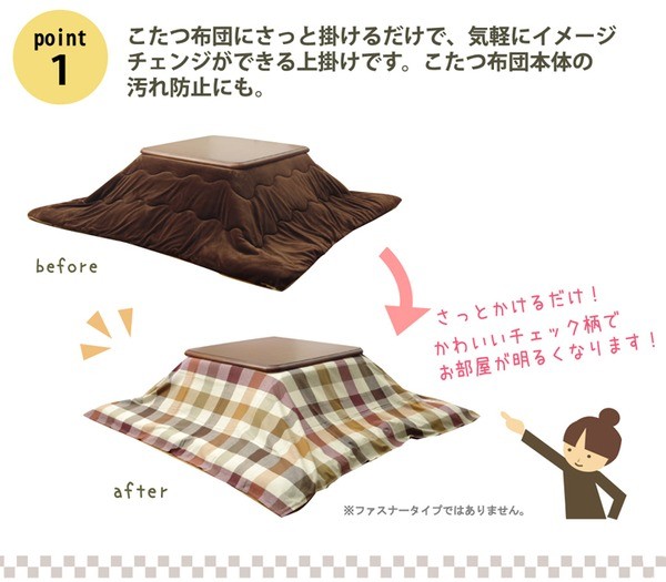 205×205cm程度のこたつ掛け布団に適応