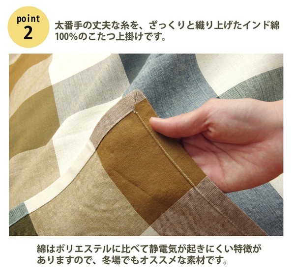 カジュアルなチェック柄でどんなお部屋にも合いやすいインド綿を使用した商品です。