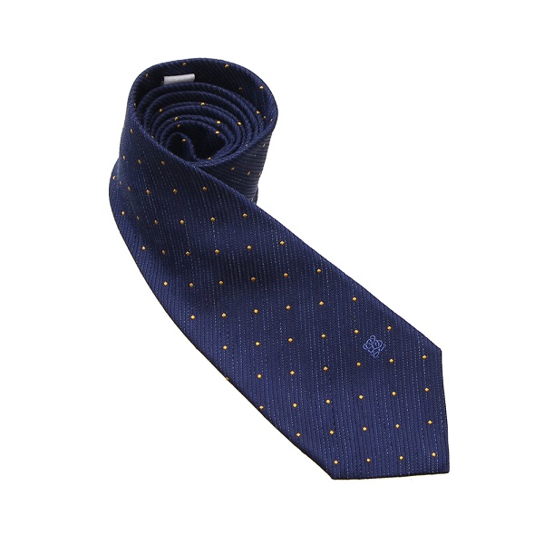 네이비 바탕색에 엘로우 포인트 도트 슬림넥타이