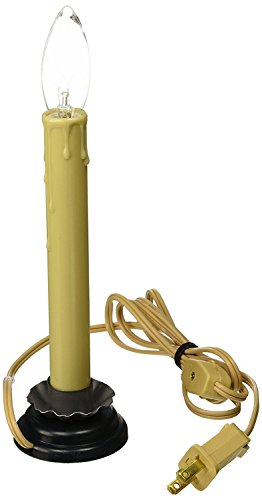 Product DescriptionCountry Candle Lamp - Flicker Bulb - Electric, with On Off Switch - Ivory with Dark Base and Clear Bulb - 7.5 inches -0