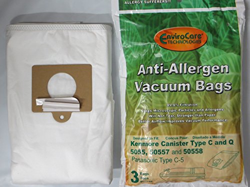 -. Feature : Total 15 Kenmore 5055 50558 50557 Type Q Canister Vacuum Cleaner Bags for Progressive, Intuition, and Whispertone Canisters 5 PACKS OF 3 / Cloth Type Allergen Bags Capture 99% of Airborne Allergens such as mold, pollen, and dust / Also Fits Panasonic Canister Vacuum Cleaners Which Use Style C-5 / Replaces Sears Kenmore Bag Number 5055 20-5055, 20-50557, and 20-50558. / Larger Sized Bag then Standard Yellow Style C Bags, Added Capacity With These Cloth Bags.BY ENVIROCARE PART #A137