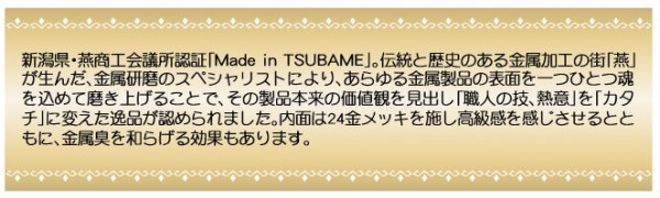 | 素材・材質 | 18-8ステンレス(内面24金メッキ仕上げ) |