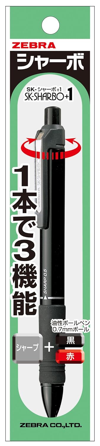 【多機能ボールペン】2色油性ボールペン0.7mm(黒・赤)+シャープ0.5mm 【仕様】ロータリーシステム(クリップ)/軸:樹脂・転写印刷仕上げ・ラバーグリップ付き 【ボールペン替芯】SK-0.7芯 【替消しゴム】G 【本体サイズ】全長140.2×最大軸径11.8mm/重量14.1g