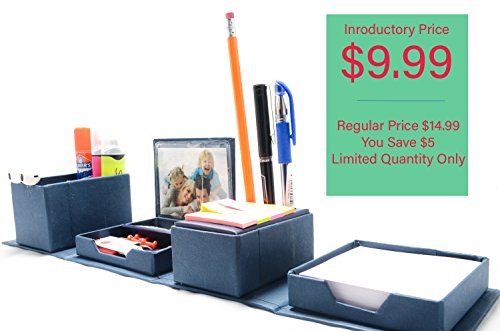 - $9.99 INTRODUCTORY PRICE FOR LIMITED UNITS ONLY. Attractive, stylish organization – Home and office desk organizer caddy to organize all your office supplies, pen/pencil, post-its, cell phone charger, cards or other small desk accessories. Neatly organize all desk accessories in this cute desk organizer.