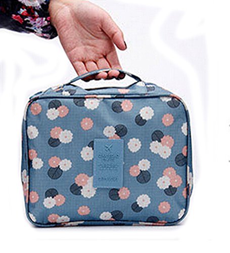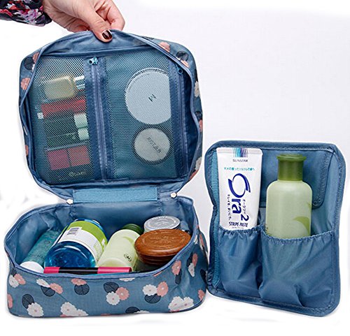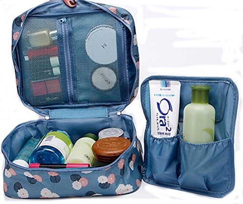Flyusa Third Generation Multifunction Portable Travel Toiletry Bag Makeup Cosmetic Pouch Kit Organizer Carry Case,Blue Flower