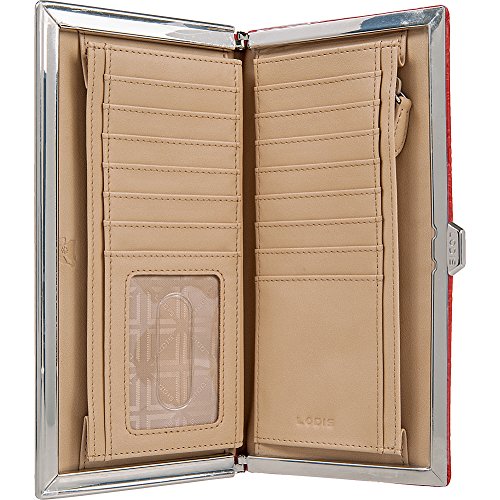 -. Binding : Apparel -. Brand : Lodis -. Department : womens -. Feature : Classic lodis frame wallet that is slim and sleek. Slip it into your bag as a wallet during the day - the multiple slots for cards, coins and currency will keep you organized and carry it as a clutch after dark / 2 gusseted bill compartments / 1 phone pocket / Interior zip closure coin pocket / 14 credit card slots -. Label : Lodis -. Manufacturer : Lodis -. PackageQuantity : 1 -. ProductGroup : Apparel -. ProductTypeName : ACCESSORY -. Publisher : Lodis -. Studio : Lodis -. Title : Lodis Denia Quinn Clutch Wallet