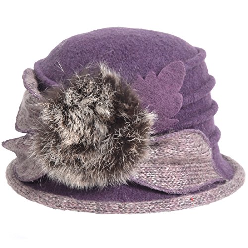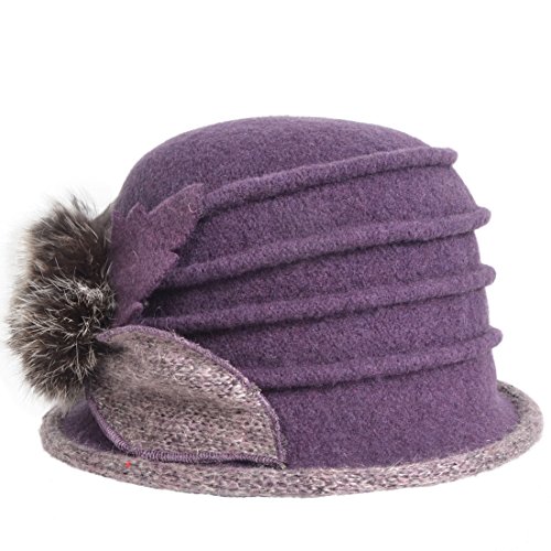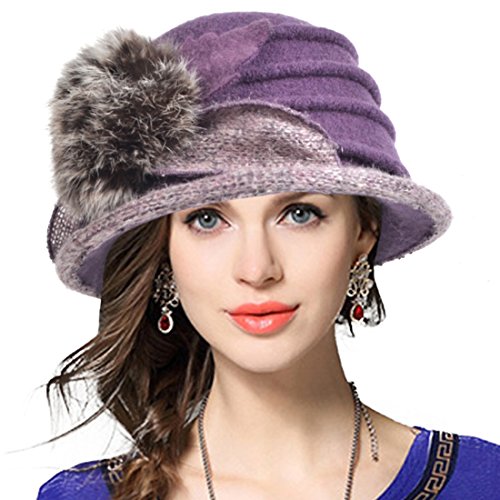 (VECRY)/Accessories/Hats/DIRECT FROM USA/Women's Wool Church Dress Cloche Hat Fur Felt Bucket Winter Hat (Purple)