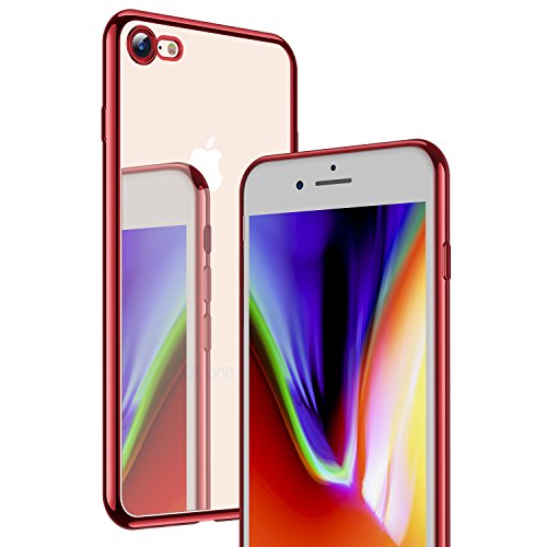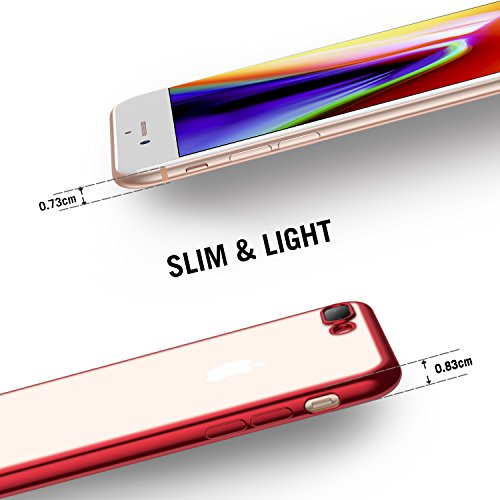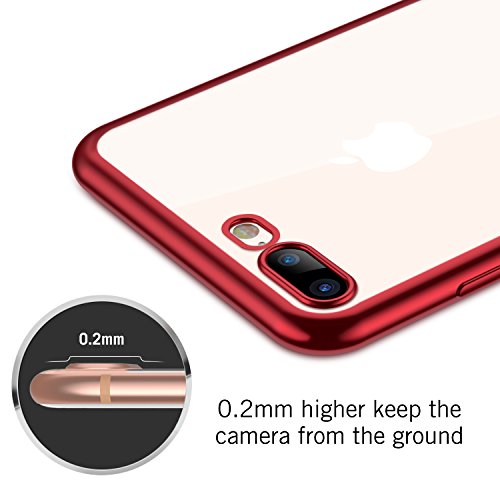 iPhone 7 Plus Case,iPhone 8 Plus Case,RANVOO Ultra Slim Thin with Premium Flexible and Transparent TPU Back Plate Protective Clear Case for iPhone 7/8 Plus(Red)