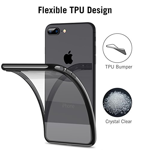 iPhone 8 Plus Case,iPhone 7 Plus Case, RANVOO Ultra Slim Thin with Premium Flexible and Transparent TPU Back Plate Protective Clear Case for iPhone 7/8 Plus(Black)