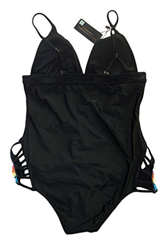 Title : HOTAPEI Women Black Padded Printed Lattice One Piece Swimsuit XXL