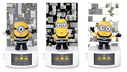 -. Feature : Includes Tom, Tim and Carl, the jail time minions from Despicable Me 3 / Each figure comes with 3 different song clips, and Voice and Sound Effects! / Each figure comes with a colorful backdrop / Connect their bases together and they sing and dance in unison! / Each figure is about 3.5" with stage. Requires 3 Button Cells (not included).