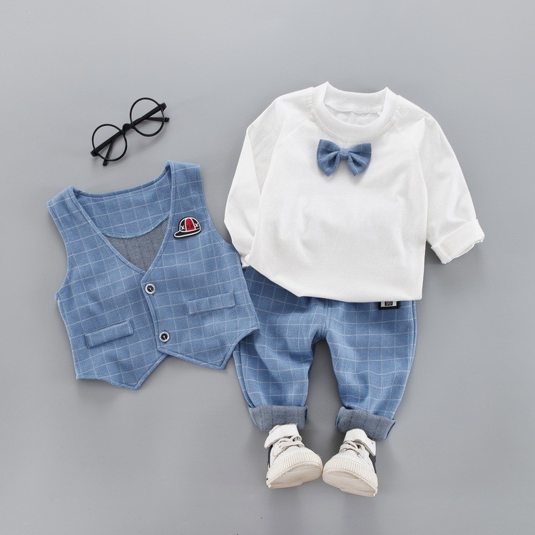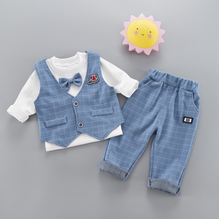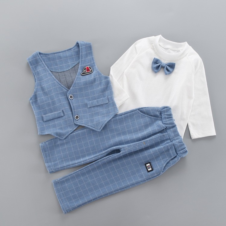 子供服 キッズ セットアップ 男の子 秋冬 長袖 蝶ネクタイ スーツ風 上下3点セット トレーナー ジュニア スウェット