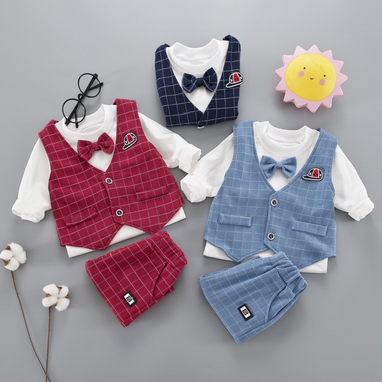 男の子 セット 蝶タイ なんちゃって スーツ 80cm 90cm 100cm 110cm 長袖 カワイイ 運動 プレゼント 贈り物 お得 秋 冬