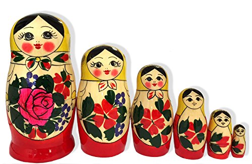 -. Feature : Hand Painted Wooden Russian Stacking Nesting Dolls Matryoshka Babushka Matreshka / 5 inch x 2 1/2 inch / 6 Nested - Authentic Russian