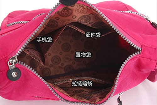 -. Feature : High quality water-resistant nylon shoulder bags-Made of practical,waterproof,superior nylon fabric,highly durable and stylish / Structure:top zip closure,an interior zipper pocket,one back pocket,2 front pockets,2 interior slip pockets,2 side pockets,comfortably holds an iPad Mini,umbrella,cellphone,iPhone wallet,keys. / Adjustable shoulder strap drops 26". / Multipurpose compartments travel handbag-Multiple zipper pockets design makes it's easy for you to classify your stuffs.Adjustable shoulder strap make it's suitable for single shoulder and crossbody carrying / Size: Approx. 11.8"x8.3"x4.7"
