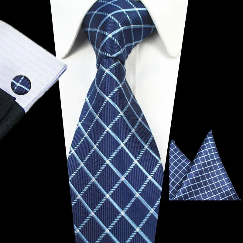 Material: 100% Handmade Silk Jacquard Neck Tie Set Including: Tie & Hanky & Cufflinks Tie