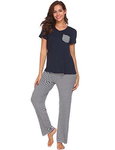 -. Binding : Apparel -. Brand : Donkap -. Department : womens -. Feature : 2psc Sleepwear: V-neck short sleeves tee shirt top with striped pocket & Elastic waist striped full-length pants. / Cute and classic stiped pattern / Soft, lightweight, stretchy and comfortable / Casual&Loose Pajama Set for a relaxing day or night / Garment Care: Machine wash cold /Hand-wash max 40¡æ -. Model : KAK000133 -. ProductGroup : Apparel -. ProductTypeName : SLEEPWEAR -. Title : Donkap Pajama Set Womens Striped Sleepwear Short Sleeve Top & Pants Pjs