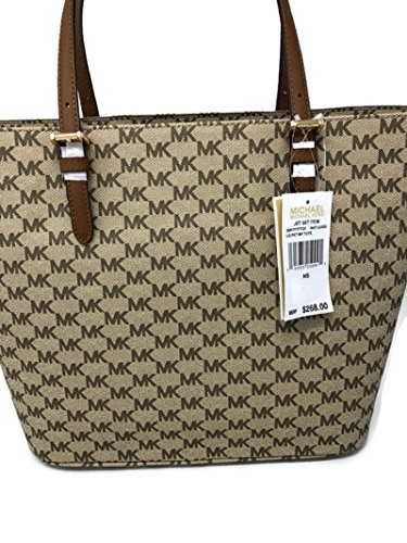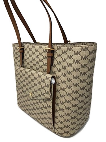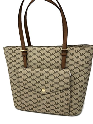 Michael Michael Kors Jet Set Tote Handbag Large Pocket Front Nat / Luggage $268