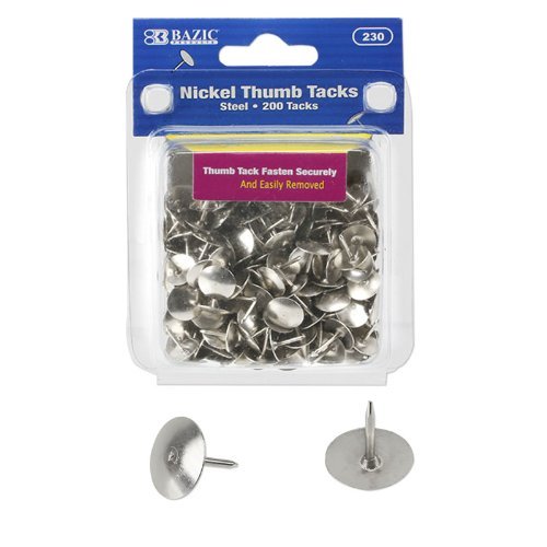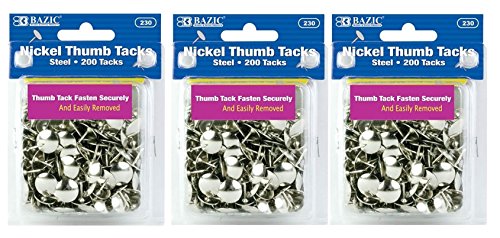 3 Pk, Bazic Nickel Thumb Tacks, 200 per pack
