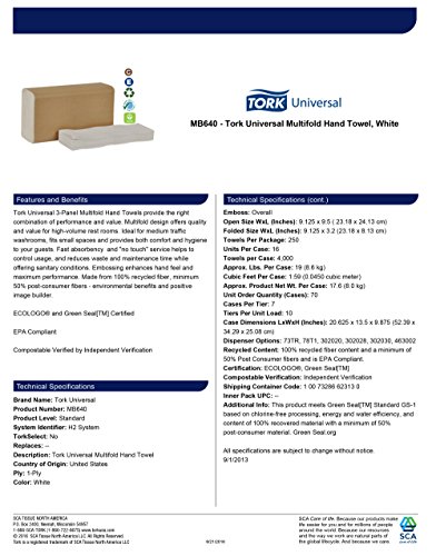 -. Title : Tork Universal MB640 Multifold Paper Hand Towel, 1-Ply, 9.125" Width x 9.5" Length, White, Green Seal Certified (Case of 16 Packs, 250 per Pack, 4,000 Towels)