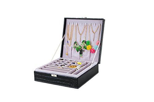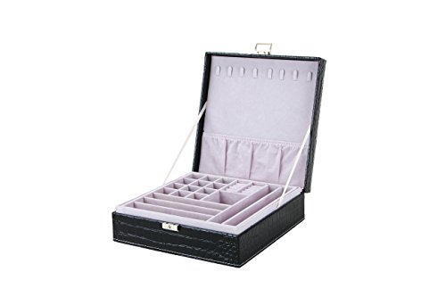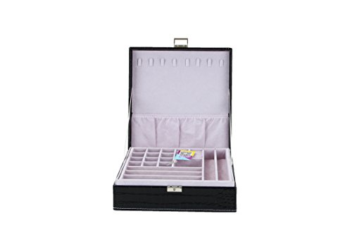 PU Leather Storage Bin Square Shape Jewelry Box Makeup Necklace Earrings Ring etc. Organizer Wedding Gift (639black)