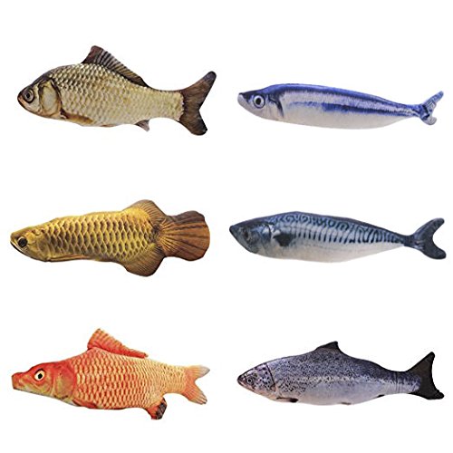 Cat Catnip Interactive Toy Value Pack -- 6 Pack artificial fish cat toy with catnip. Carp, grass carp, salmon, saury, mackerel, Arowana
