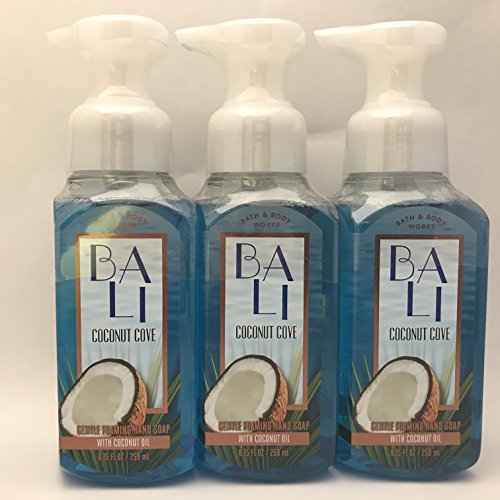 -. Binding : Misc. -. Brand : Bath & Body Works -. EAN : 0667543600694 -. Feature : Escape with a refreshing blend of fresh coconut, passion flower & coral berry / Gentle Foaming / Set of 3 Bottles, 8.75 fl.oz/259 ml Each / With Coconut Oil! -. IsAdultProduct : 0 -. Label : Bath & body works -. Manufacturer : Bath & body works -. MPN : Coconut Cove -. PackageQuantity : 3 -. PartNumber : Coconut Cove -. ProductGroup : Beauty -. ProductTypeName : BEAUTY -. Publisher : Bath & body works -. Studio : Bath & body works -. Title : Bath & Body Works Bali Coconut Cove Gentle Foaming Hand Soap Set of 3 -. UPC : 667543600694