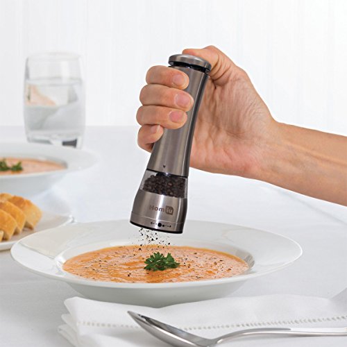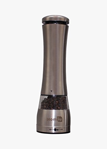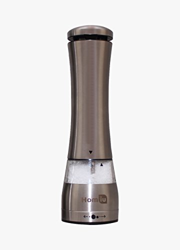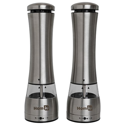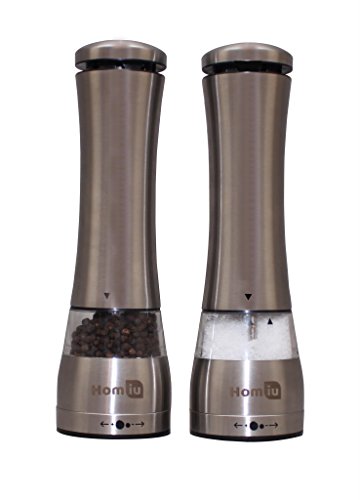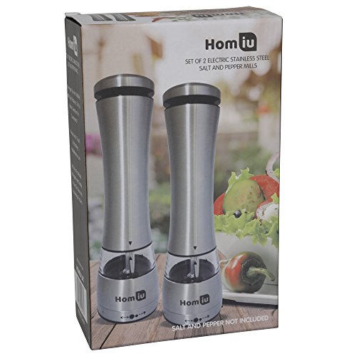 Homiu Illuminated Large Electronic Stainless Steel Salt & Pepper Mill Grinder Set with Adjustable Grinder - Silver