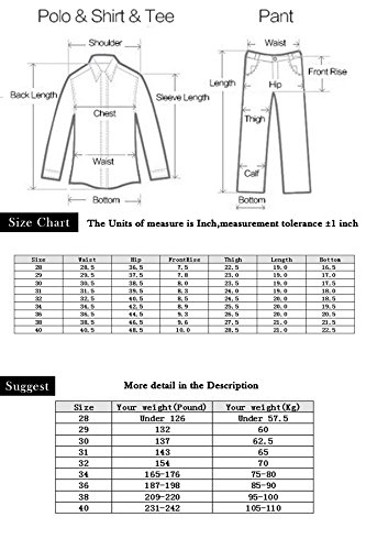 Size---Waist---Hip---FrontRise---Thigh---Length---Bottom 28-----28.5----36.5----7.5-------22.5-----19.0-----16.5 29-----29.5----37.5----7.8-------23.0-----19.0-----17.0 30-----30.5----38.5----8.0-------23.5-----19.0-----17.5 31-----31.5----39.5----8.3-------24.0-----19.0-----18.0 32-----32.5----40.5----8.5-------24.5-----20.0-----18.5 34-----34.5----42.5----8.9-------25.5-----20.0-----19.5 36-----36.5----44.5----9.3-------26.5-----20.0-----20.5 38-----38.5----46.5----9.6-------27.5-----21.0-----21.5 40-----40.5----48.5----10.0------28.5-----21.0-----22.5
