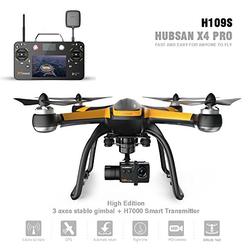 -. Binding : Toy -. Brand : Hubsan -. EAN : 0840250104079 -. Feature : Hubsan quadcopter 4 channels and 5.8GHz transmitter FPV & 2.4GHz receiver. / 1080P HD Camera real time FPV ,adjustable visual shooting . / Latest GPS locating system ,headless mode and altitude mode ,automatic return ,follow me function . / 3 Axis Gimbal Rotation and latest 6-axis flight control system with adjustable gyro sensitivity. / High edition 9.18 inch touch screen remote control with the H7000 version Android 4.2 operation system . -. IsAdultProduct : 0 -. Label : Hubsan -. Manufacturer : Hubsan -. ProductGroup : Toy -. ProductTypeName : TOYS_AND_GAMES -. Publisher : Hubsan -. Studio : Hubsan -. Title : Hubsan H109S X4 Pro 5.8GHz FPV With 1080P HD Camera 6 Axis Gyro and 3 Axis Gimbal Rotation GPS RC Quadcopter High Edition -. UPC : 840250104079