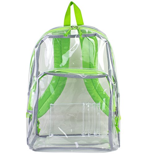 The Eastport Clear Backpack provides plenty of storage space for books, school supplies and more. The pack's straps are adjustable to fit most children. Each strap is padded for comfort. The Eastport Backpack is made of 100 percent polyester and is clear, so you can easily find the items stored inside. A front pocket and the main pocket seal shut with heavy-duty zippers. A pen holder is built into the front pocket. The polyester backpack is small enough for a child to carry and big enough for an adult.