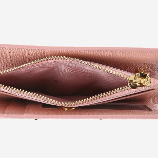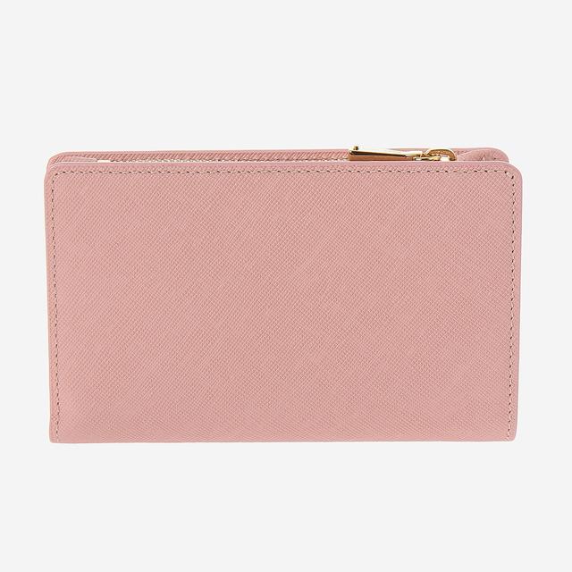 가죽의 결이 살아있는 사피아노 가죽 바탕에 골드 로고 장식으로 포인트를 준 중지갑입니다.