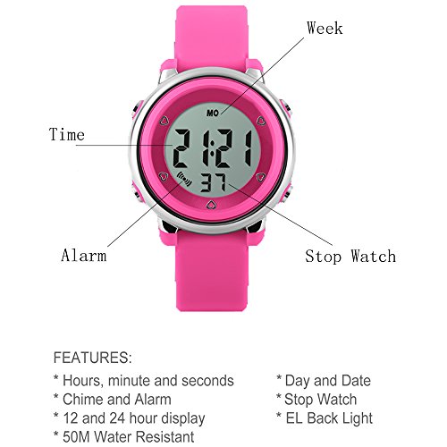 -. Title : TOPCABIN Waterproof Watch Children Wristwatch Students Jelly Color Fashion Personality Lights Rose Red