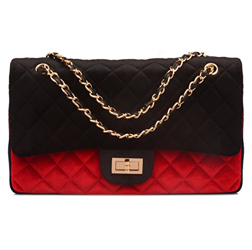 Ainifeel Women's Quilted Fabric Flap Shoulder Handbag And Purses With Chain Strap (Large, Black Flap)
