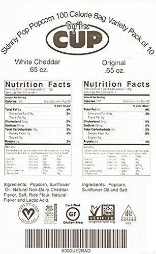 Skinny Pop Popcorn .65 oz Original & White Cheddar 100 Calorie Bag Variety Pack of 10 with By The Cup Bag Clip