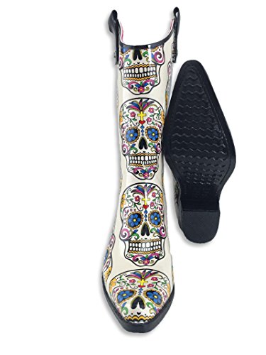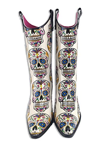 Studio : Blazin Roxx Publisher : Blazin Roxx Binding : Apparel Product Description Don't let a rainy day keep you from wearing a great pair of cowgirl boots. These Blazin Roxx Ladies Sugar Skull Cowgirl Rain Boots have a great western profile including the extremely popular snip toe and the colorful skull pattern will brighten even the dreariest of rainy days. 0