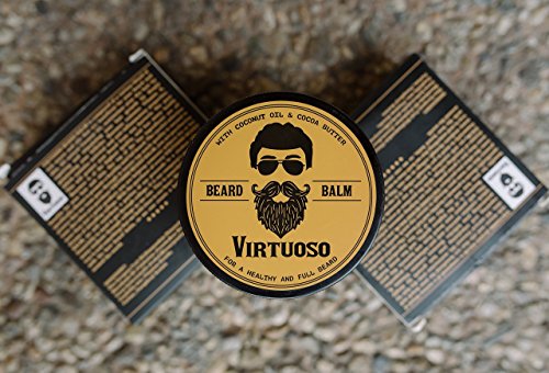 Virtuoso Beard Balm, w/Cocoa Butter and Beeswax For A Full, Healthy and Moisturizing Beard. -3oz/100g- Sandalwood Scent