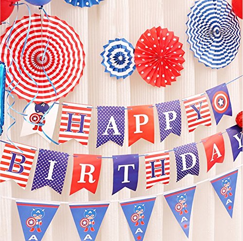 Captain America Happy Birthday Bunting Banner, Birthday Party Decoration, Captain America Themed Party Decoration