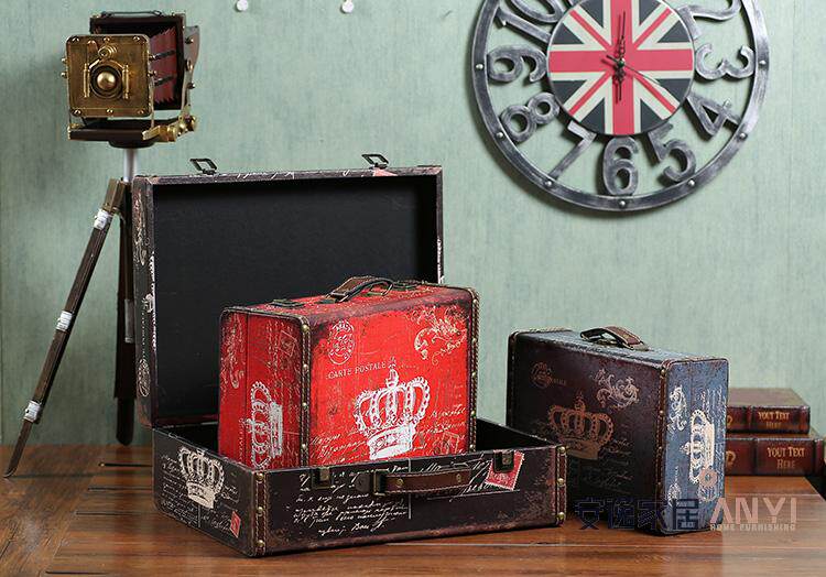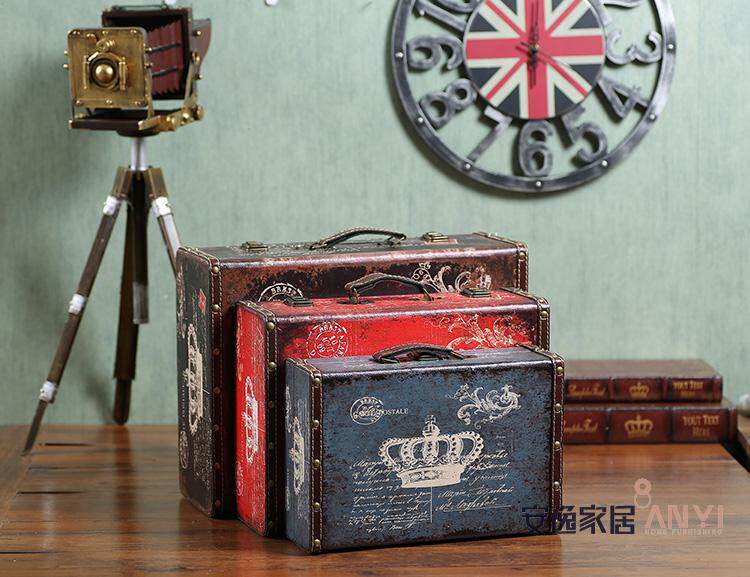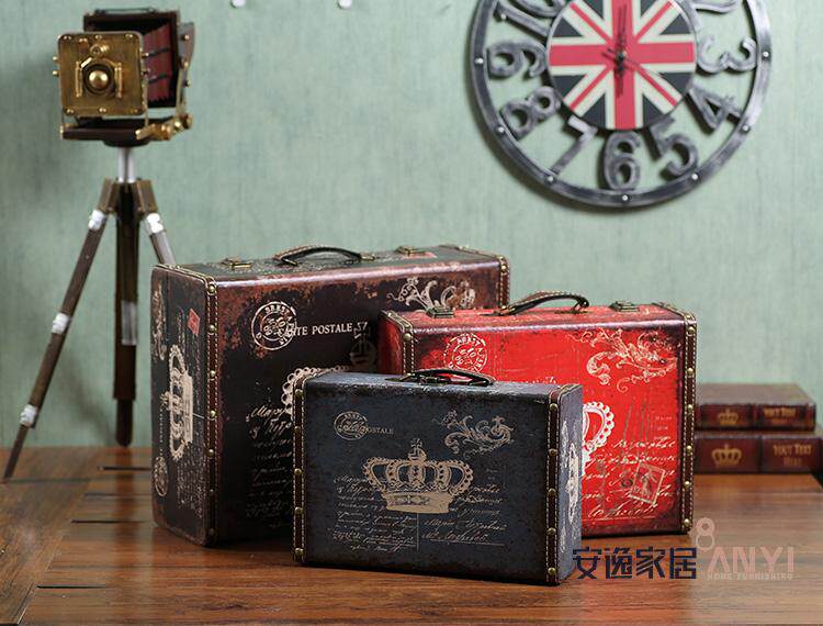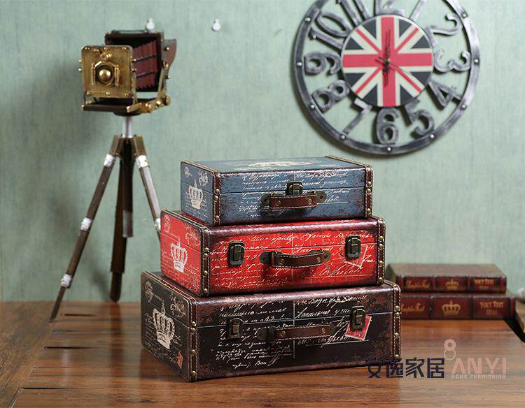 复古皮箱摆件 手提箱木箱子摄影陈列道具 橱窗摆设服装店软装饰品