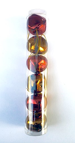 6 Deep Red and Brown Metal Jingle Bells With String Loops