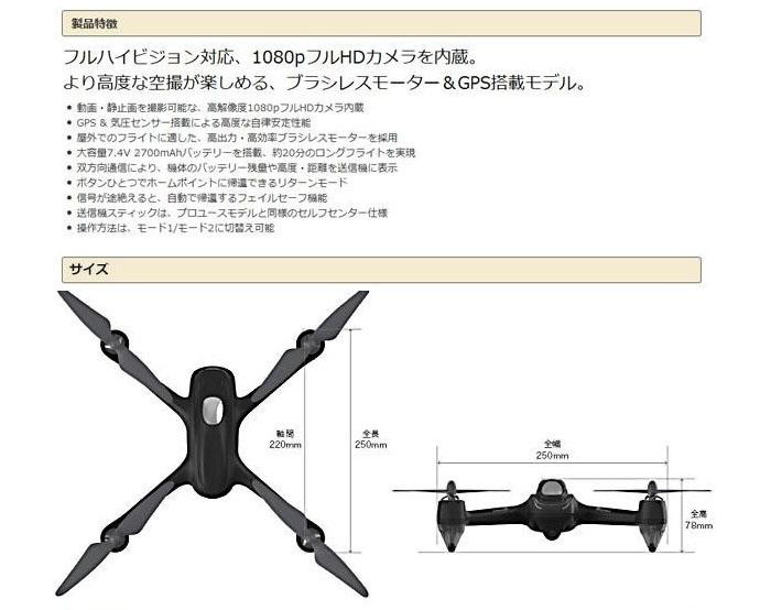 | 屋外でのフライトに適した、高出力・高効率ブラシレスモーターを採用。大容量7.4V 2700mAhバッテリーを搭載し、約20分のロングフライトを実現。また、信号が途絶えると、自動で帰還するフェイルセーフ機能が付いています。 |