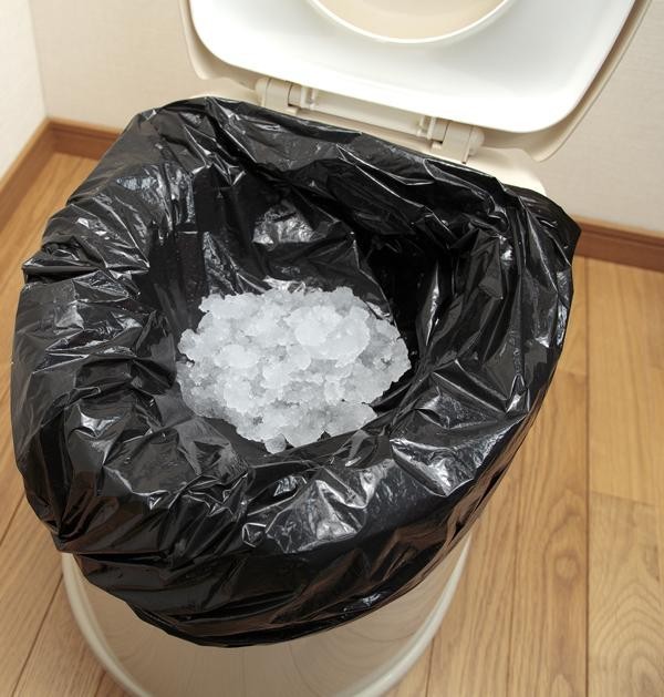 | 水が使えない場所や断水時でも用を足すことが可能!!市販のゴミ袋(45L)をセットするだけでOK!ふりかけると素早く固まるので後処理もカンタン! |