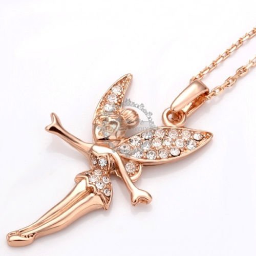 Flotera 8K Rose GP Swarovski Elements Crystal Angel TINIKERBELL Necklace (Rose Gold)