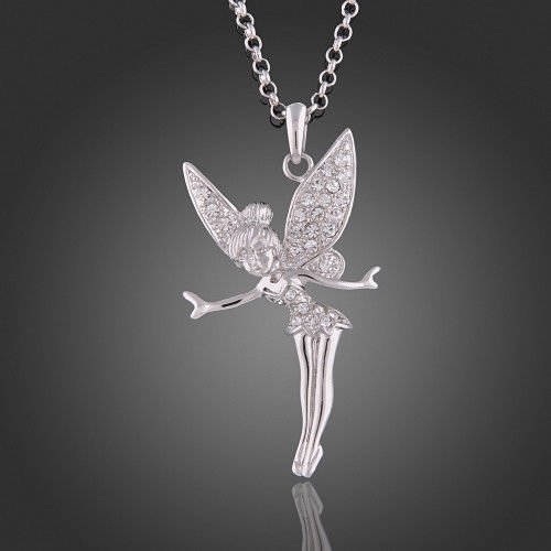 Flotera 8K White/Rose GP Swarovski Elements Crystal Angel TINIKERBELL Necklace (White Gold)